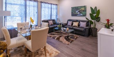 - Luxury Wood-style Flooring in Kitchen, Dining, and Living Areas